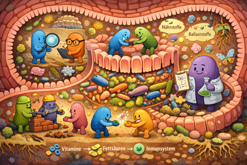 Unser Darm ist also kein einfacher „Schlauch“, sondern ein komplexes Ökosystem. Nicht nur die Menge der Bakterien zählt – entscheidend ist vor allem, wie sie zusammenarbeiten und welche Funktionen sie tatsächlich ausführen.